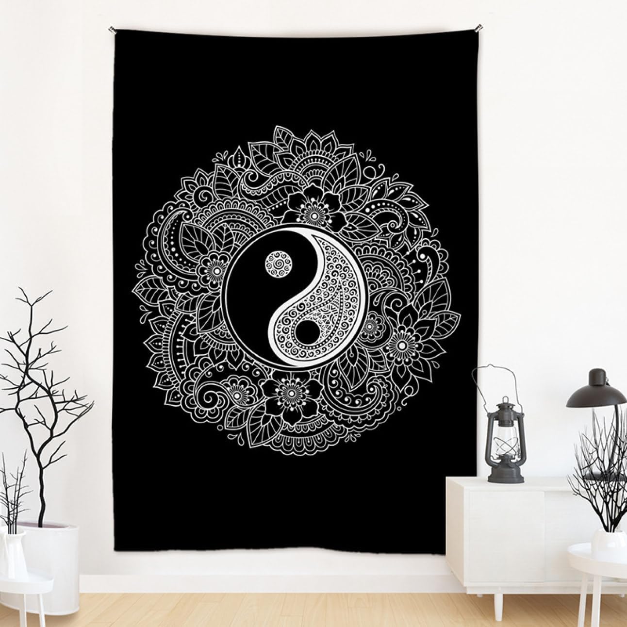 お部屋の装飾 ソファーカバー マンダラ 曼荼羅 更紗 唐草 インド綿 布 バティック DGM1 パ。マルチクロス 太極図 75*100 タイダイホーリーカラー〔約209cm×約213cm〕 / タペス