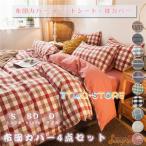 布団カバー セット 4点セットチェック柄 シングル セミダブル ダブル クイーン ベッドカバー 寝具セット 枕カバー おしゃれ 四季通用 北欧風 柔らかい