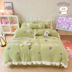 フリル オシャレ 韓国風 布団カバー 4点セット 掛け布団カバー かけ布団カバー 姫系 布団カバーセット フラットシーツ 枕カバー ベッド用 布団用 北欧