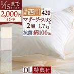 羽毛布団 ダブル 昭和西川 西川掛布団カバー特典付 ホワイトマザーグースダウン93% しっかり1.7kg DP420 超長綿 二層式キルト 綿100% 超