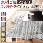 (タイムセール中) こたつセット おしゃれ 長方形 2点セット 折脚フラットヒーターこたつ 120×90cm+国産北欧柄こたつ布団 折りたたみ