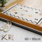 ブラックフライデー限定 玄関マット ゴブラン 60×90cm 洗える ギャベ風 エスニック 花柄 シェニール おしゃれ ラグ カーペット マット 屋内 マンション