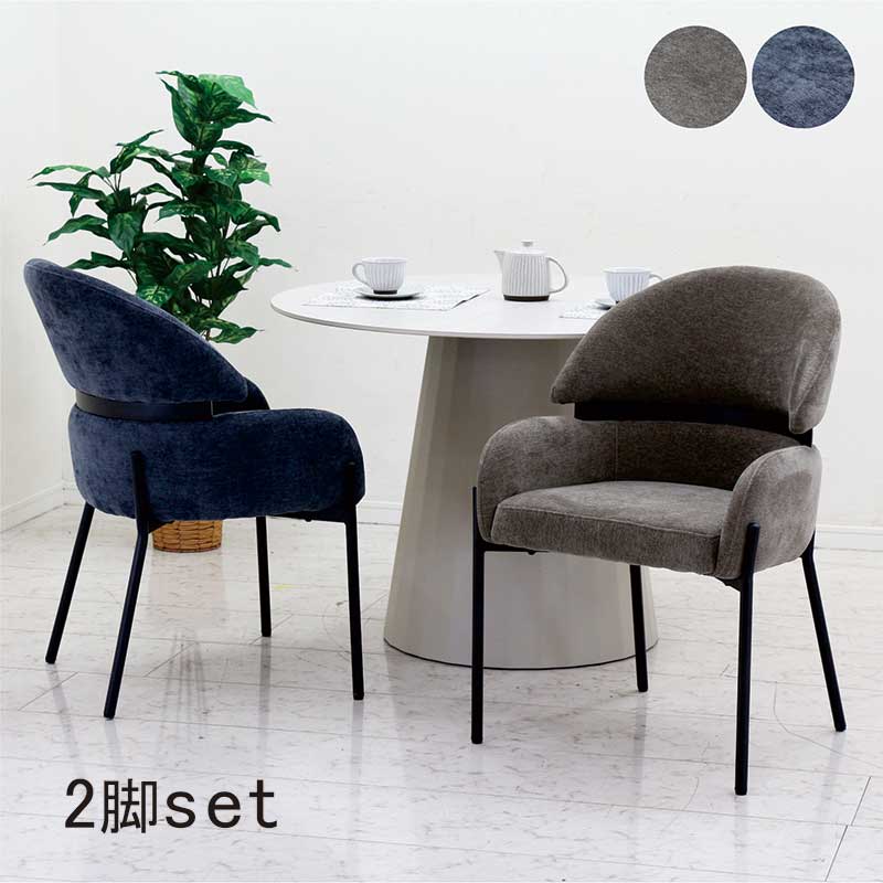 北欧 ダイニングチェア チェア 椅子 2脚セット 肘掛けあり 肘置きあり 背もたれ広い ファブリック 布 ダイニング椅子 食卓椅子 イス ネイビー グレー 丸い 丸み カフェ オフィス スタイリッシュ おしゃれ シンプル 北欧スタイル カジュアル モダン 高級感