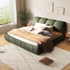 【並行輸入品】MAKIAAP キングサイズ 布張りプラットフォームベッド 特大パッド入り背もたれと無垢材フレーム 寝室、アパートルーム、グリーン