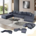 【並行輸入品】156インチの雲の骨なしセクショナルソファ、可動式オットマン3台、深いシート付きのモダンな布張りのソファ、特大モジュラー圧縮ソファ