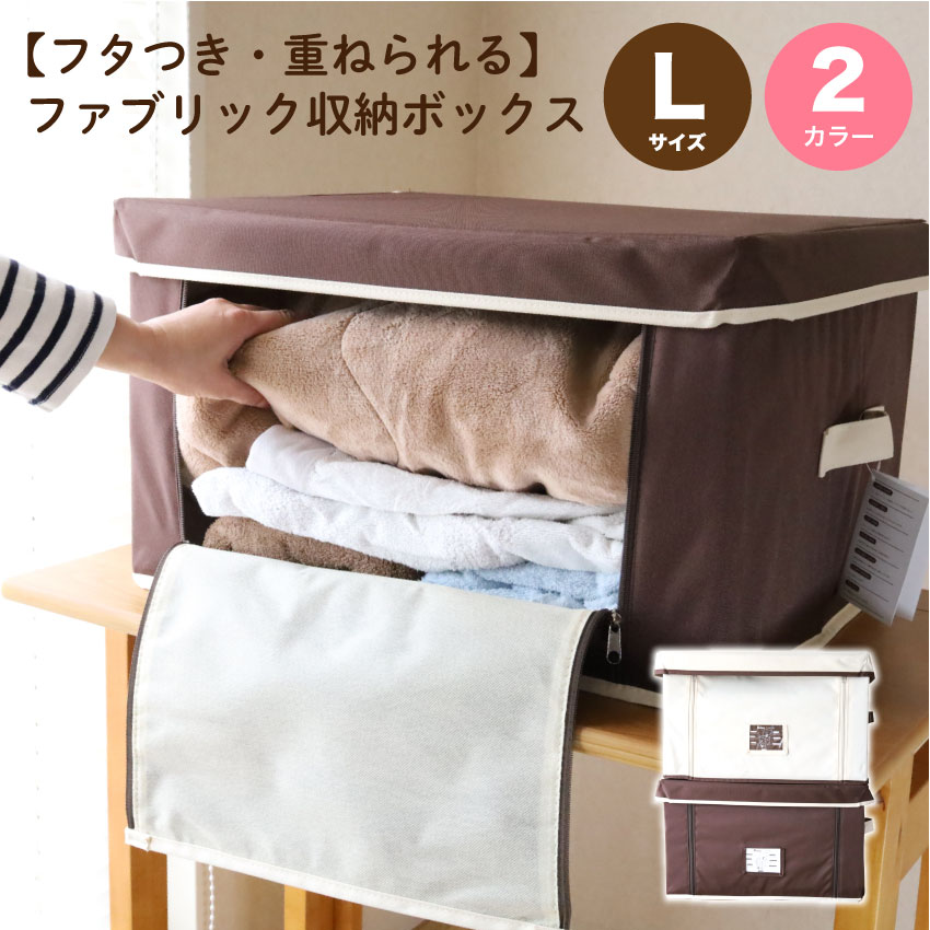 スーパーSALE 50%OFF 収納ボックス 衣類収納 ストレージボックス 幅50×奥40×高30cm ワイヤーフレームで丈夫!積み重ねても前から取り出す事が可能 布 折りたたみ ふた付き ケース 整理 おもちゃ箱 タオル 北欧 ファブリック アイボリー ブラウン シンプル おしゃれ