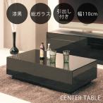 【10/24 20時〜 10%OFFクーポン!】ガラステーブル ローテーブル テーブル センターテーブル 机 座卓 幅110cm 引き出し付き 収納付き シンプル ブラック モダン 北欧 リビング 韓国インテリア