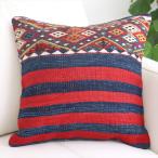 オールドキリム クッションカバー40cmサイズ Old Kilim Cushion ブルー&レッド シンプルボーダー&ジジム