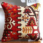 オールドキリムクッションカバー45cm Turkish Kilim Cushionトルコのウール手織りキリム パッチワーク