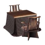 ハイタイプこたつテーブル ダイニングコタツ 90センチ幅 長方形+肘付回転座椅子2脚+掛布団の4点セット 日向 ひゅうが 長方形こたつ ダークブラウン色