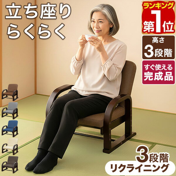 高座椅子 リクライニング 高齢者 完成品 肘掛付き 立ち上がりやすい 介護椅子 座面高さ調整 3段階 座椅子 椅子 転倒防止 シニア プレゼント 1年保証 送料無料