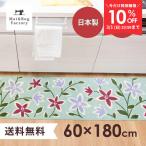 キッチンマット 約180×60cm 洗える 幅広 パッションフラワー ロング おしゃれ シンプル 台所マット おしゃれ 布製 滑り止め 日本製 廊下敷き オカ