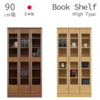 本棚 扉付き 書棚 大容量 90幅 完成品 ハイタイプ ブックシェルフ 日本製 ラバーウッド 引出し 引出し収納 開き扉 引出付き 国産 扉収納