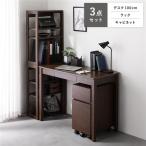 天然木 デスクシリーズ 3点セット デスク 100cm幅 + ラック + キャビネット ブラウン デスクセット 引出し付き