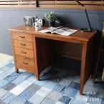 デスク 木製 スリム PCデスク 引出し付き 幅112cm 奥行45cm 高さ70cm 天然木 アンティーク リビング ブラウン