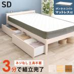 ベッド セミダブル ポケットコイルマットレス付き 引き出し 簡単組立 すのこ 頑丈 棚 コンセント ベット スノコ 工具不要 耐荷重200kg
