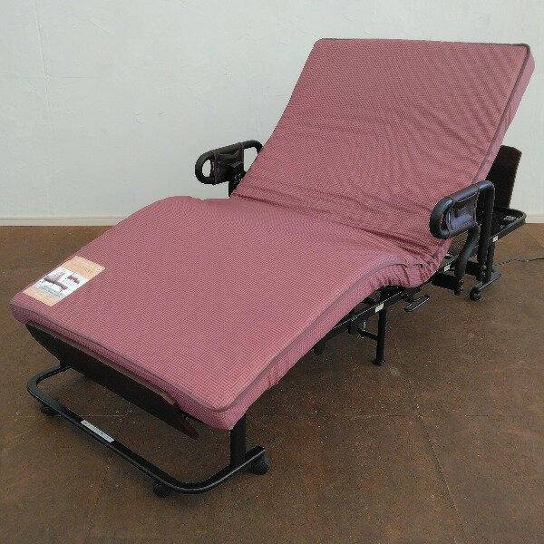 シングル 折りたたみベッド マットレス付き 電動 リクライニング ワインレッド ベッド ベッドマット ベッド台 一人暮らし ワンルーム