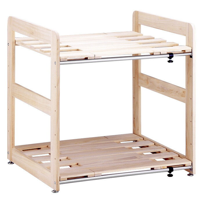 押入れ収納ラック 2段 押し入れ 収納 棚 伸縮式 押入れラック 布団ラック 桐製 すのこ棚
