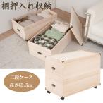押入れ収納ケース 総桐 キャスター付き 2段 高さ63.5cm 桐衣装箱 衣装ケース GB-0019