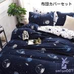 布団カバーセット 枕カバー 掛け布団カバー ボックスシーツ 敷き布団カバー シーツカバー 寝具カバーセット プラネット ダブル4点セット190×210cm