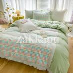 布団カバー フリル チェック柄 ストライプ 掛け布団カバー 敷き布団カバー4点セット セミダブル ダブル ベッド シーツ 枕カバー 寝具カバーセット