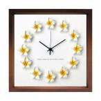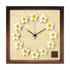 壁掛け時計 アートパネル おしゃれ ハワイ 南国リゾート プルメリア 花 かわいい 木枠 ウォールクロック ブラウン