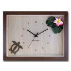 壁掛け時計 アートパネル おしゃれ ハワイアンキルト 南国リゾート ハイビスカス かわいい 木枠 ウォールクロック