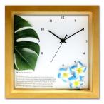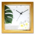 時計 おしゃれ アジアン ハワイアンテイスト モンステラ プルメリア インテリアクロック 壁掛け 掛け時計 カフェ 店舗 ウォールクロック 四角
