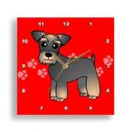【並行輸入品】 dpp_40887_3 Janna Salakデザイン犬 - ミニチュアシュナウザー縞模様の茶色のベースコート(塩とコショウ) - 漫画の犬 - 足跡と赤 - 壁掛け時計