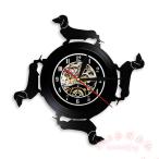 ダックスフンド 犬 掛け時計 レコード盤 30cm KNK(株) ヴィンテージ風 壁アート インテリア 人気 プレゼント 輸入雑貨