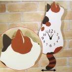振り子時計 三毛猫 掛け時計 猫 しっぽ 振り子 壁掛け時計 静音 インテリア掛時計 スイープ ねこ ネコ おしゃれ プレゼント ギフト /60N◇ 振子時計/三毛猫