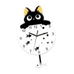 猫の壁掛け時計 動物装飾時計 子供部屋 寝室用 ブラック