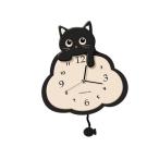 猫の壁掛け時計 動物装飾時計 子供部屋 寝室用 ブラック