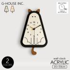 【クーポン5,000円OFF】【ポイント5倍】【送料無料 ※北海道・沖縄・離島除く 】GMS03111 掛け時計 おしゃれ かわいい モダン 北欧 デザイン アクリル製 ブラック ブラウン くすみカラー 2サイズ 猫 ネコ くりくり目 静音 掛け時計 時計 振り子時計 揺れるしっぽ