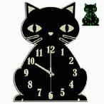 【並行輸入品】 猫 壁掛け時計 ナイトライト 暗闇で光る サイレント カチカチ音なし 電池式 高品質 クォーツ 木製 壁時計 寝室 ホームデコレーション ブラック