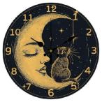 【並行輸入品】 CHGCRAFT 月 壁掛け時計 12インチ 電池式 木製 壁掛け時計 星 猫 カチカチ音を立てない 静音 壁掛け時計