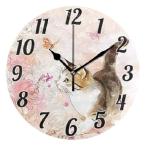 【並行輸入品】 ALAZA かわいい猫 蝶 Flwoer 壁掛け時計 電池式時計 静音 9.5インチ カチカチ音を立てない壁掛け時計 寝室 リビングルーム 装飾