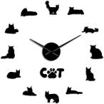 DIY 掛け時計 手作り 壁掛け ウォールクロック ウォールステッカー 壁時計 装飾時計 猫のシルエット DIY 壁掛け時計 モダン サイレント 3D フレームレス ウォー