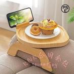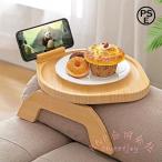 木製ソファクランプテーブル、ソファアームレストトレイ、フルーツスナックトレイ、朝食プレート回転ブラケット、コンピュータスタンド、360°回転携帯電話ホル