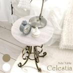 サイドテーブル カフェテーブル 円形 丸型 おしゃれ 北欧 韓国系 クラシック 完成品 Celestia 幅40 高さ56.5 ホワイト アンティークゴールド