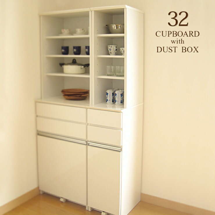 [全品5%OFFクーポン!本日で終了] 国産日本製 エナメル鏡面塗装 32幅センチ型ハイタイプ ダストボックス ゴミ箱 ペールボックス付 完成品 キッチン収納 食器棚 すき間収納 整理棚 ゴミ箱付ホワイト 白 送料無料 開梱設置無料