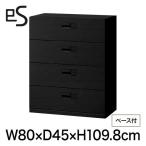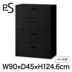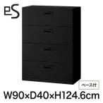 書類収納 イトーキ エス キャビネット 4段 引出し 型 下段用 スマートロック 幅90cm 奥行40cm 高さ124.6cm ベース付 色:ブラック まとめ買いで8%OFFクーポン