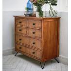 NEO ラタン チェスト 高級天然木チーク材 X 籐 ラタンを組み合わせた贅沢な箪笥 タンス たんす 引き出し6個付き収納整理棚 民芸和家具調 和風 おしゃれ