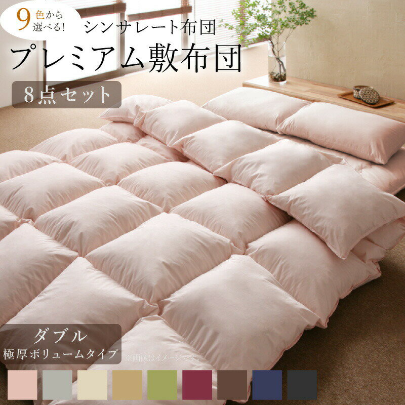 布団セット 布団 ダブル カバー付き 来客用 敷き布団 掛け布団 枕 布団カバー 敷布団カバー 収納ケース 収納袋 9色から選べる シンサレート入り プレミアム敷布団タイプ 極厚ボリュームタイプ ダブル10点セット