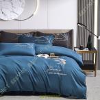 綿100% 布団カバー 掛け布団カバー 4点セット シングル ダブル セミダブル 敷き布団カバー 丸洗いOK 防ダニ 刺繍 おしゃれ ピローケース ベッドシーツ