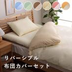 リバ カバー 3点セット 掛布団カバー 敷き布団カバー 枕カバー リバーシブル オールシーズン シンプル 無地 ズレ防止 洗濯可能 洗える