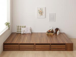 お買い物マラソン|5%OFFクーポンあり|国産夜香スタンダード2マット付き 脚付タイプすのこベッド ダブル 頑丈ベッド耐荷重200キロ 敷き布団使用OK 高さ3段階調整可 ローベッド ステージベッド 棚付き ダブルベッド 搬入簡単 6-236-D-