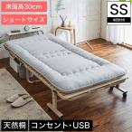 折り畳み桐すのこベッド ショートセミシングル 専用日本製V-lap敷布団セット 棚付き コンセント USBポート