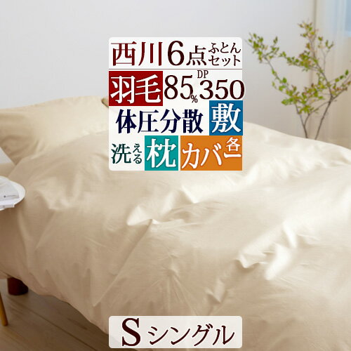 12/1限定★11%OFFクーポン 羽毛布団セット シングル 西川 羽毛布団6点セット 組布団セット 西川厳選ダウン85% 掛け布団 健康敷き布団 体圧分散 枕 高さ調節可能 西川 カバー付き 新生活応援 セット