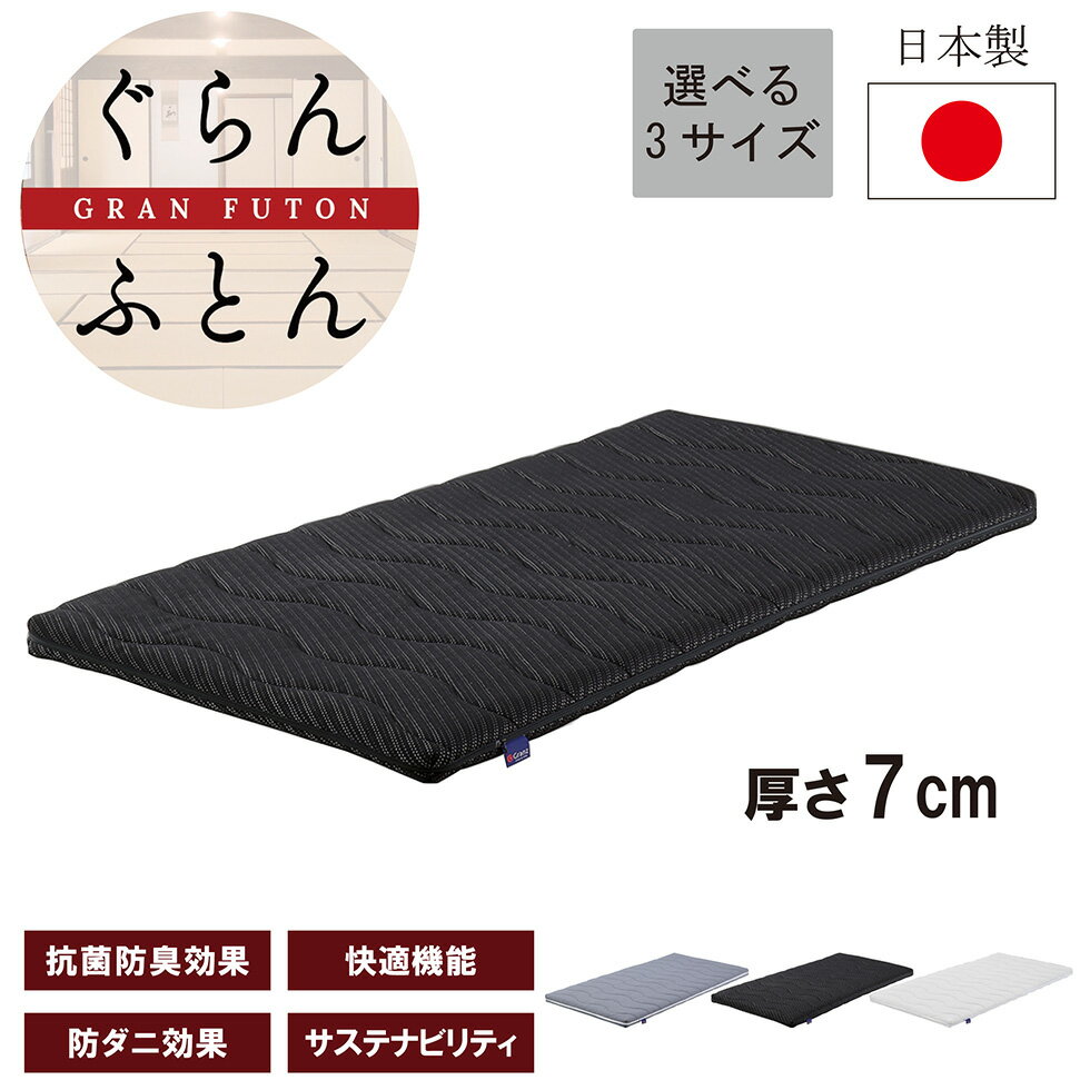 【マラソン期間10%OFFクーポン配布】マットレス ふとん シングル セミダブル ダブル ベッドマットレス 国産 日本 7cm 通気性 保温性 防ダニ 抗菌 防臭 敷布団 布団 脱着 洗えるカバー 洗濯 ニット生地 グランツ グランふとん 送料無料